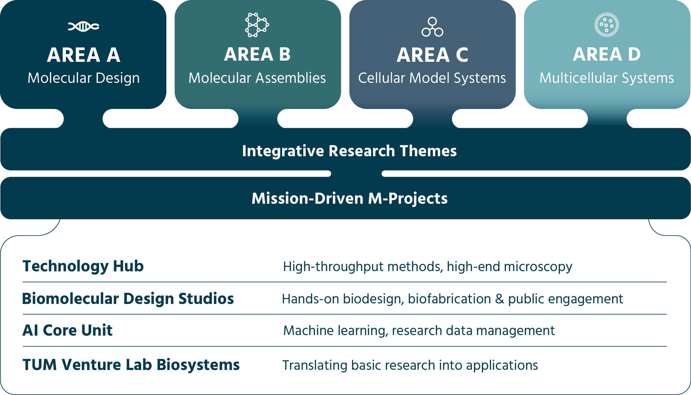 BioSysteM is organized in Research Areas, Research Themes, and mission-driven M-Projects reflecting our three basic questions: Why do we want to design biosystems? How can we achieve biosystems design? Can we tailor biosystems for specific applications?