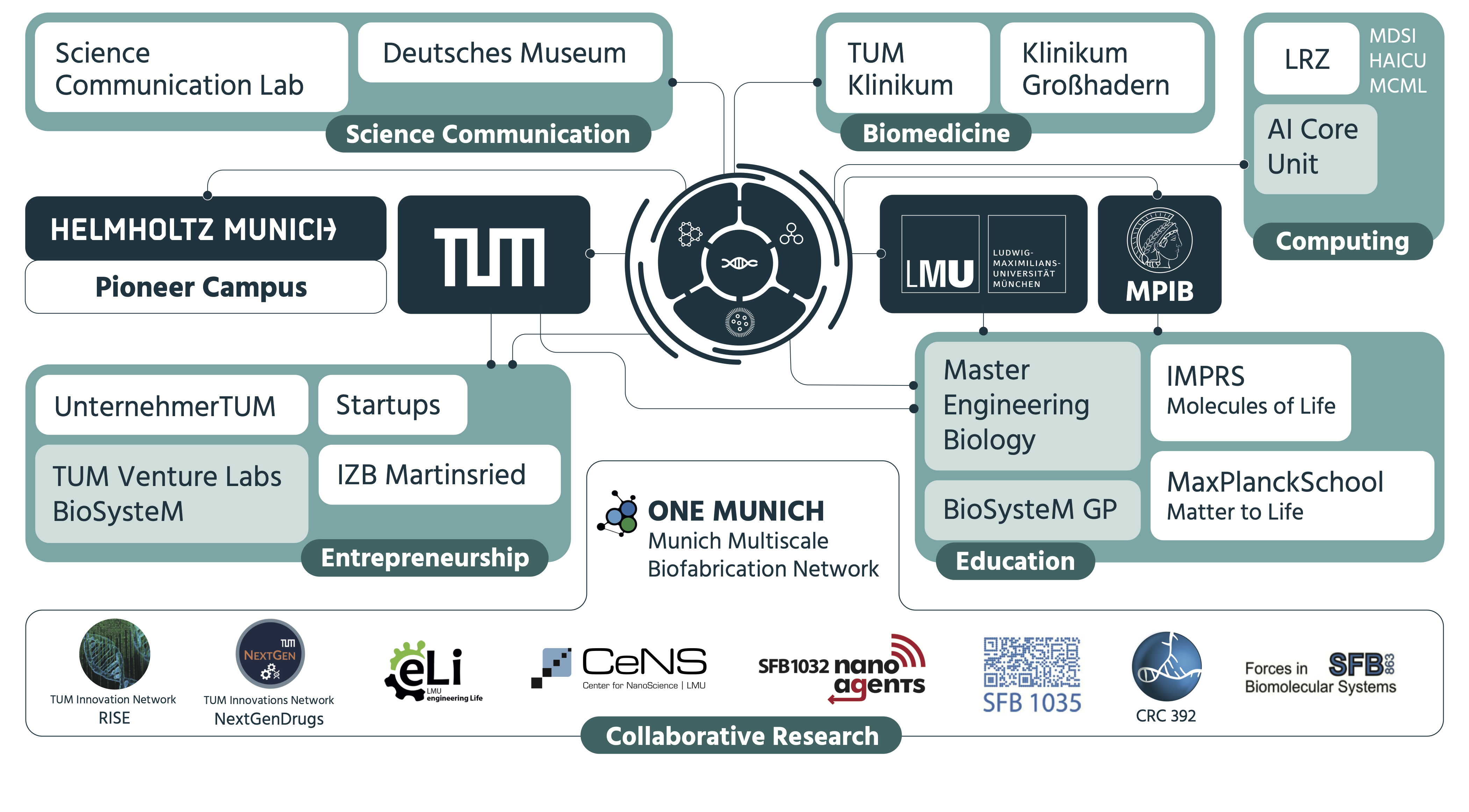 It comprises two of Germany’s most successful universities, the Technical University of Munich (TUM) and the Ludwig-Maximilians-Universität München (LMU), as well as the international renowned partner institutions Max Planck Institute of Biochemistry, Helmholtz Munich and Deutsches Museum.