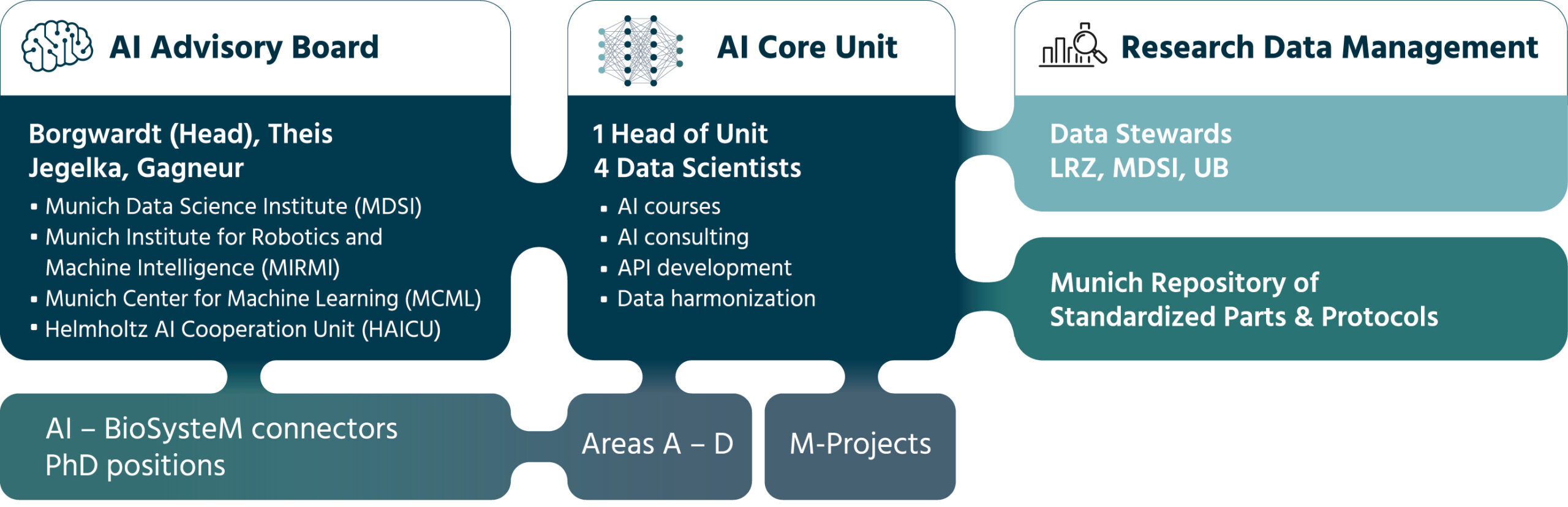 An important aspect of the BioSysteM effort is the accurate organization, harmonization, and exchange of research data that will fuel the application of data-hungry machine learning approaches. Apart from research data, defining standards and databases for experimental protocols and biosystem designs will be of critical importance for the establishment of the Munich Repository of Standardized Parts and Protocols (MRSPP).